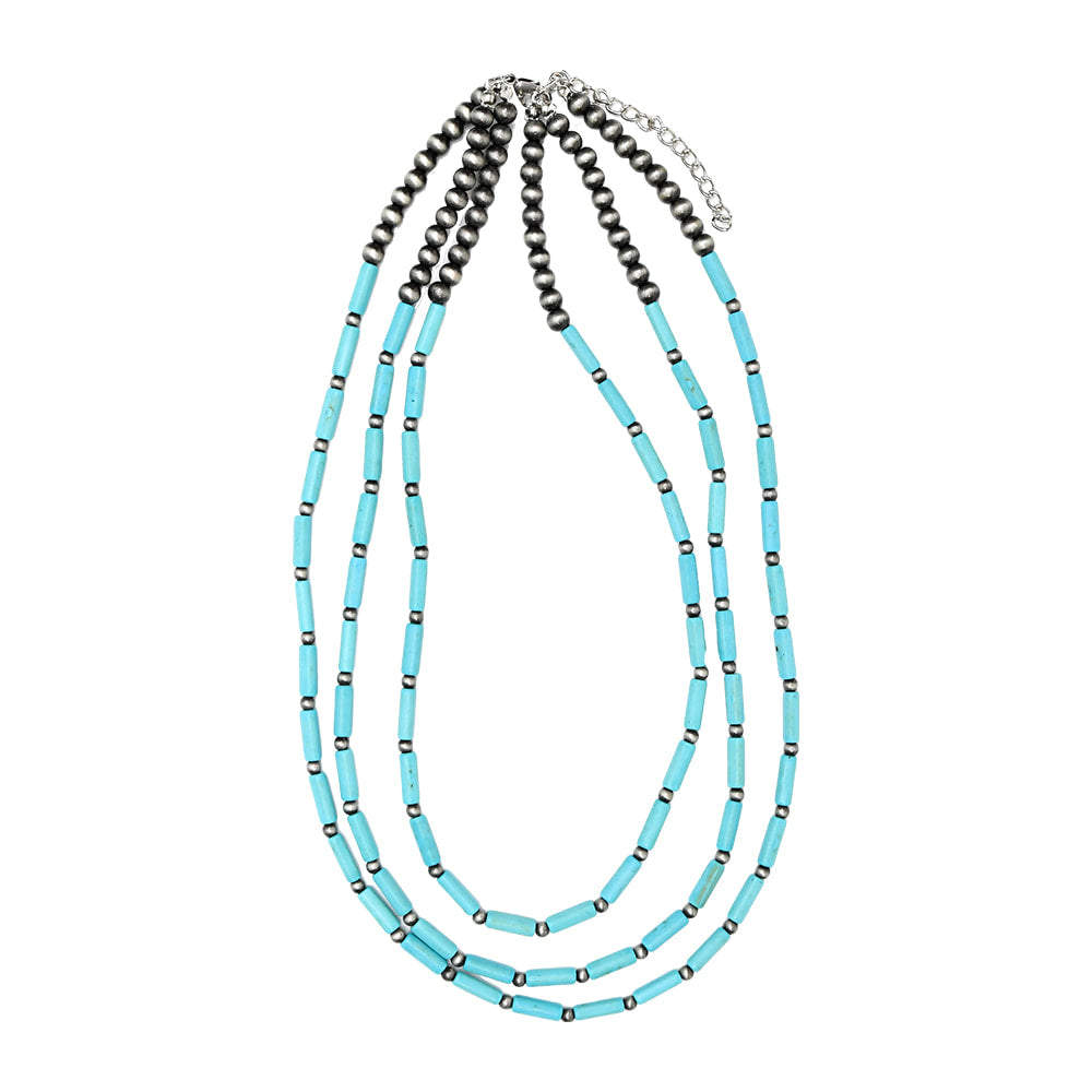 West and Co. 3 Strand Turquoise Tube Bead and Faux Navajo Pearl Necklace