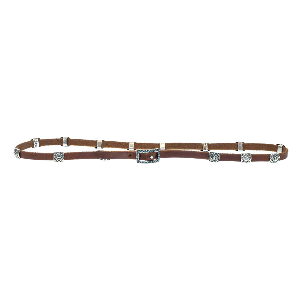 Peyote Bird Designs Silver Concho And Brown Leather Hat Band