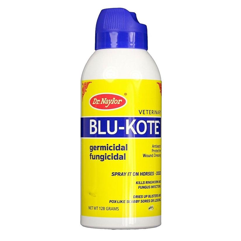 Infection is always in the back of your mind about any of your animals, however Dr. Naylor's Blu-Kote makes it easier to keep bacteria at bay and keep your peace of mind! Get yours today at South Texas Tack! Blu-Kote is a germ-killing, fungicidal wound dressing and healing aid that works to protect animals against common infections and pus-producing bacteria. It penetrates the skin and dries quickly, reducing pus formation and drying up secretions of pox-like lesions. For animal use of many sorts: bumblefoot in chickens; hamsters; guinea pigs; scratches on horses; goat pox; ringworm; wire cuts. Also is useful marking agent for animals and in treating proud flesh in horses. Positive results after castrations or on the umbilical cord to dry out the wound. In a chicken coop Blu-Kote helps prevent group pecking. 128g Aerosol Spray.