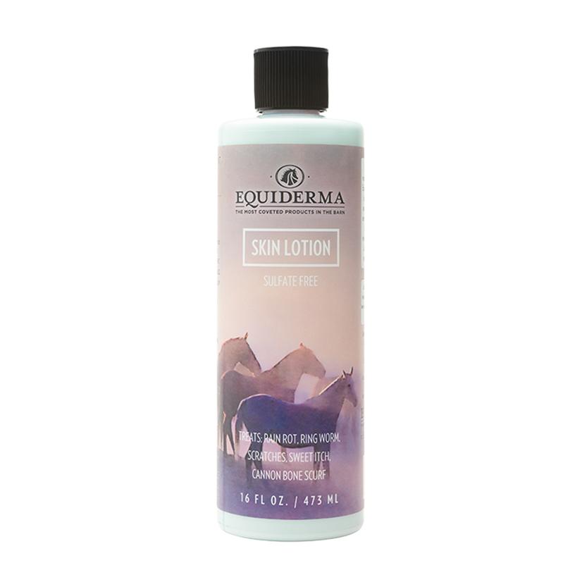Equiderma 16 Oz Skin Lotion helps with rain rot, scratches, mallenders, mane and tail itching, sweet itch (insect bite reactions), summer sores, dandruff and more! The ingredients attack and kill bacterial and fungal infections that cause most equine skin aliments. Simple to use, just was the area thoroughly to remove all dirt, rinse well and towel dry and then apply lotion to affected area with sponge or hand towel. This is made from mineral oil, chlorhexidine, lavender essential oil, and trichloromethyl .006%