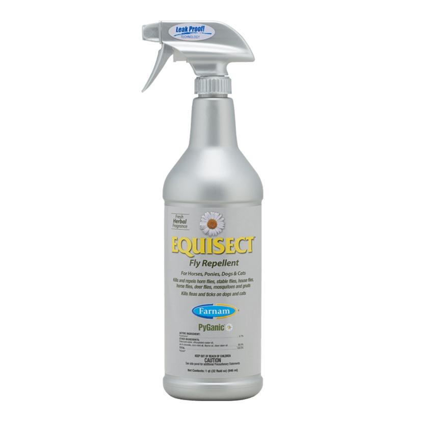 EquiSect Fly Repellent repels and kills horn, stable, house, horse and deer flies as well as mosquitoes, lice, and gnats on horses and ponies. Equisect also controls fleas and ticks on cats and dogs. EquiSect Fly Repellent is guaranteed to provide better results than any other popular natural repellent product. Unique active ingredient approved by both the EPA and OMRI. Made in the USA.