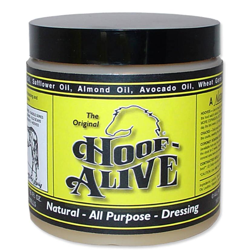 All natural Hoof Alive can be used all over your horse. It uses natural ingredients that penetrate the hoof and become a part of the living tissue, including the hoof wall. Hoof alive can also be used for conditions such as rope burns, cinch sores, abrasions, and cuts. Hoof Alive contains avocado oil, coconut oil, lanolin, glycerin, safflower oil, almond oil, wheat germ oil, aloe, lecithin, and vitamin E.