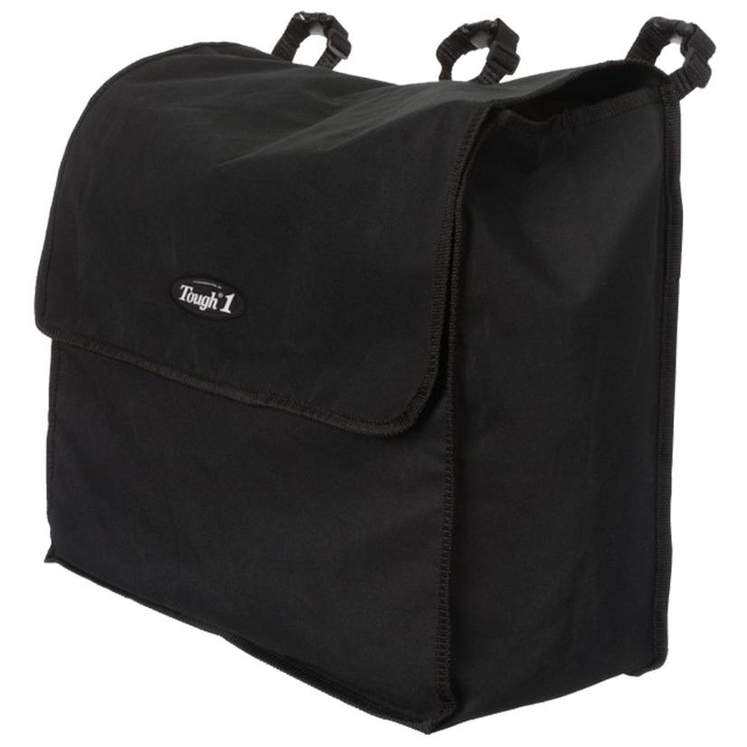 Even you horse can be organized with this 23x19x9 heavy cordura bag. It has 3 adjustable loops with snap closure to attach bag to stall front, trailer, or tack room. With a large opening and quick grip closure on top it allows you to easily place winter blankets, sheets, sport boots, and any thing else your horse might need in a easy and convent place.