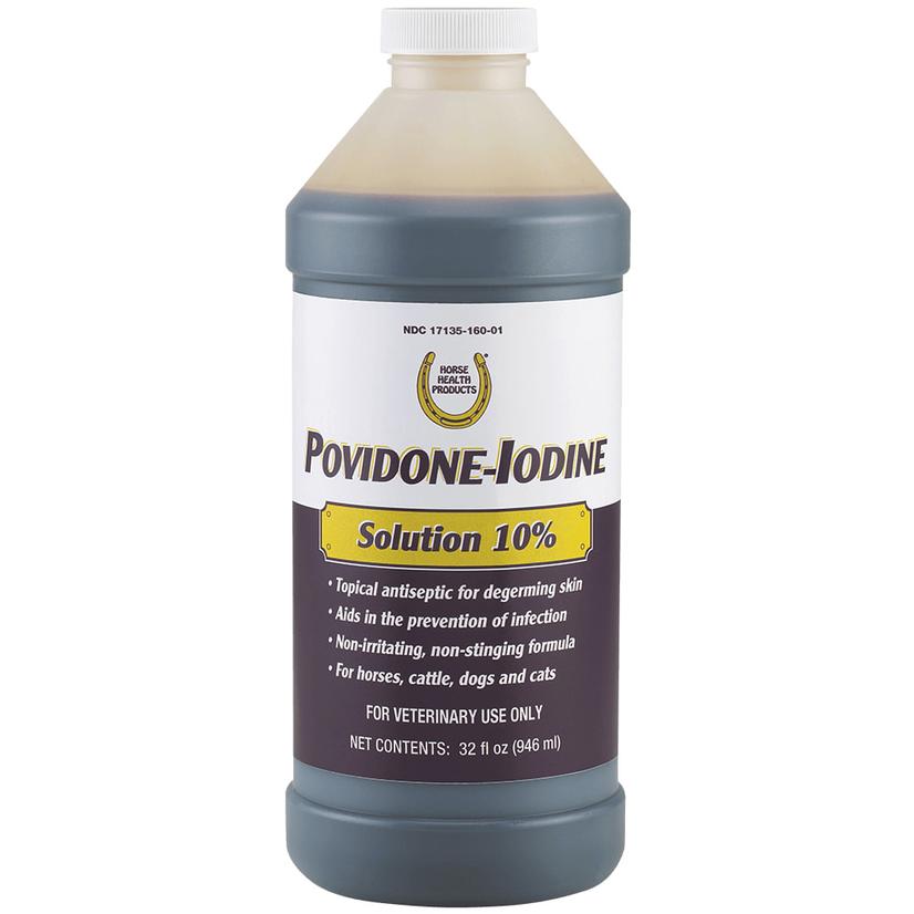 The Povidone-Iodine 10% Solution 32oz by Horse Health Products features a non-stinging, non- irritating formula. Helps prevent infection in small wounds and does not stain skin,hair or natural fabrics. Get yours today!