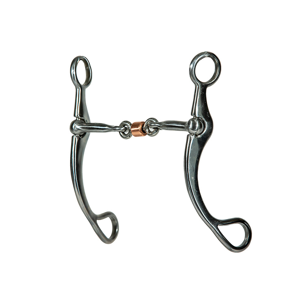 This dogbone bite has a cheek of 6.5". With a teardrop loop at the reins. This professional Choice dog bone shank gives pre-signal for the horse when feeling the rein slide.