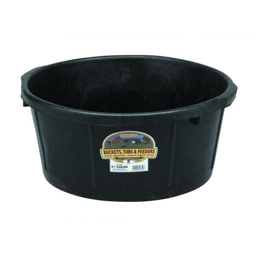 Little Giant rubber feed pan with a 6.5 gallon capacity. Made with strong DuraFlex rubber to ensure it is not only long-lasting, but also crack-proof, crush-proof, and freeze-proof. This all-purpose tub is great for feeding and watering, or other jobs around the farm, ranch, or garden.
