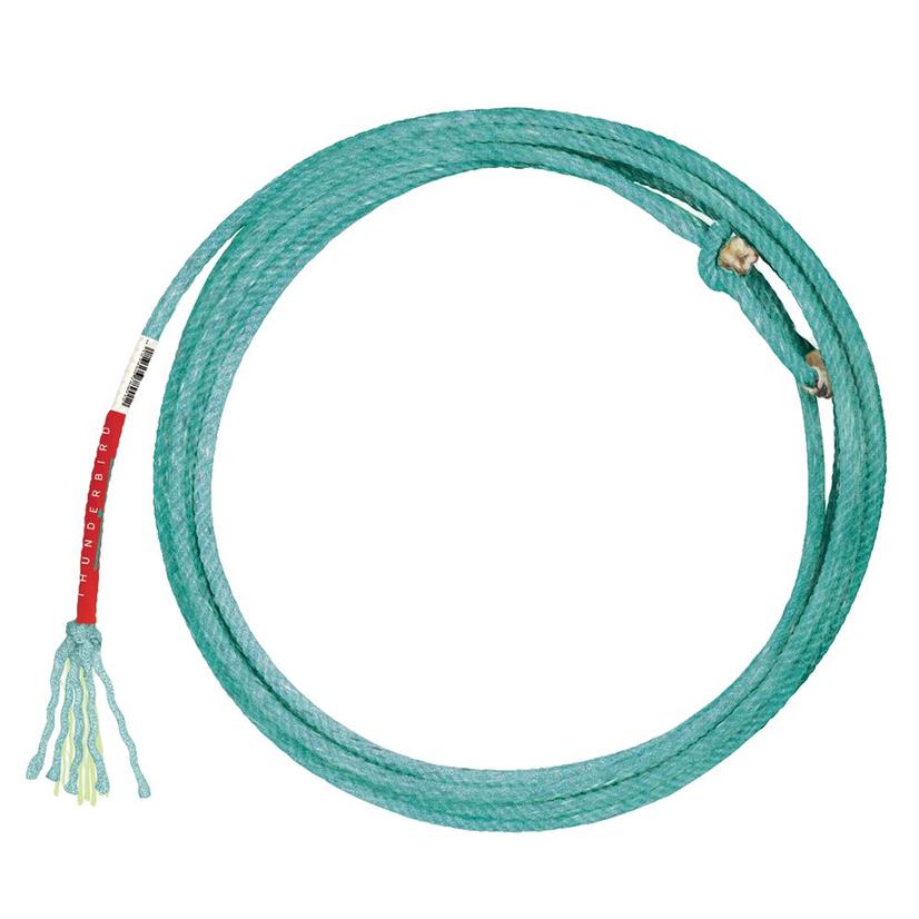 The Lone Star Thunderbird Heel Rope is a uniquely engineered 4 strand rope, with a nylon/poly blend, combined with a multi-directional, double-twisted core, to allow the center core to counterbalance the rope as a whole. This rope has a very even weight to it, exceptional tip feel and a good bite on the horn! Made in the USA.