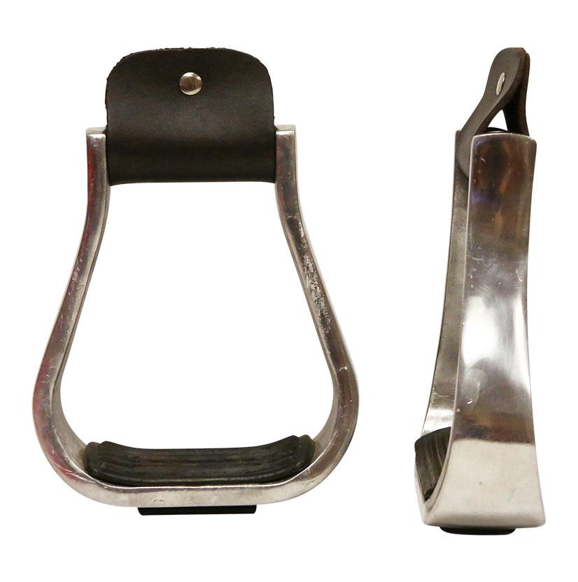 These aluminum stirrups by Martin are extra wide so you can use them with crepe soles, muck boots or packers. The rubber grip will keep your foot from going in too deep so that there is less risk of being dragged.
