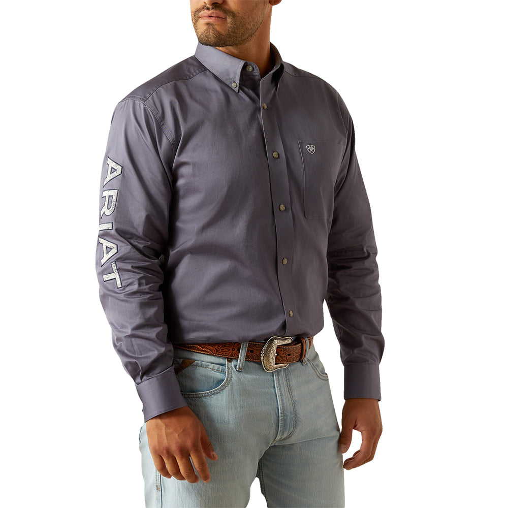Ariat Men's Classic Fit Team Logo Collection Solid Long Sleeve Button-Down Shirt In Grey And White