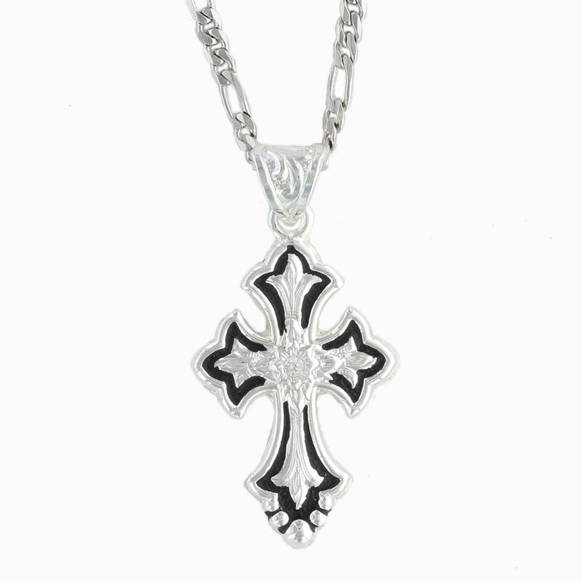 Enhance your stye with this beautifully handcrafted Montana Silversmith Necklace. A silver-tone cross pendant with intricate black edging and accents pair great with the 18" silver plated chain.