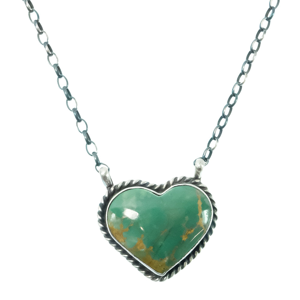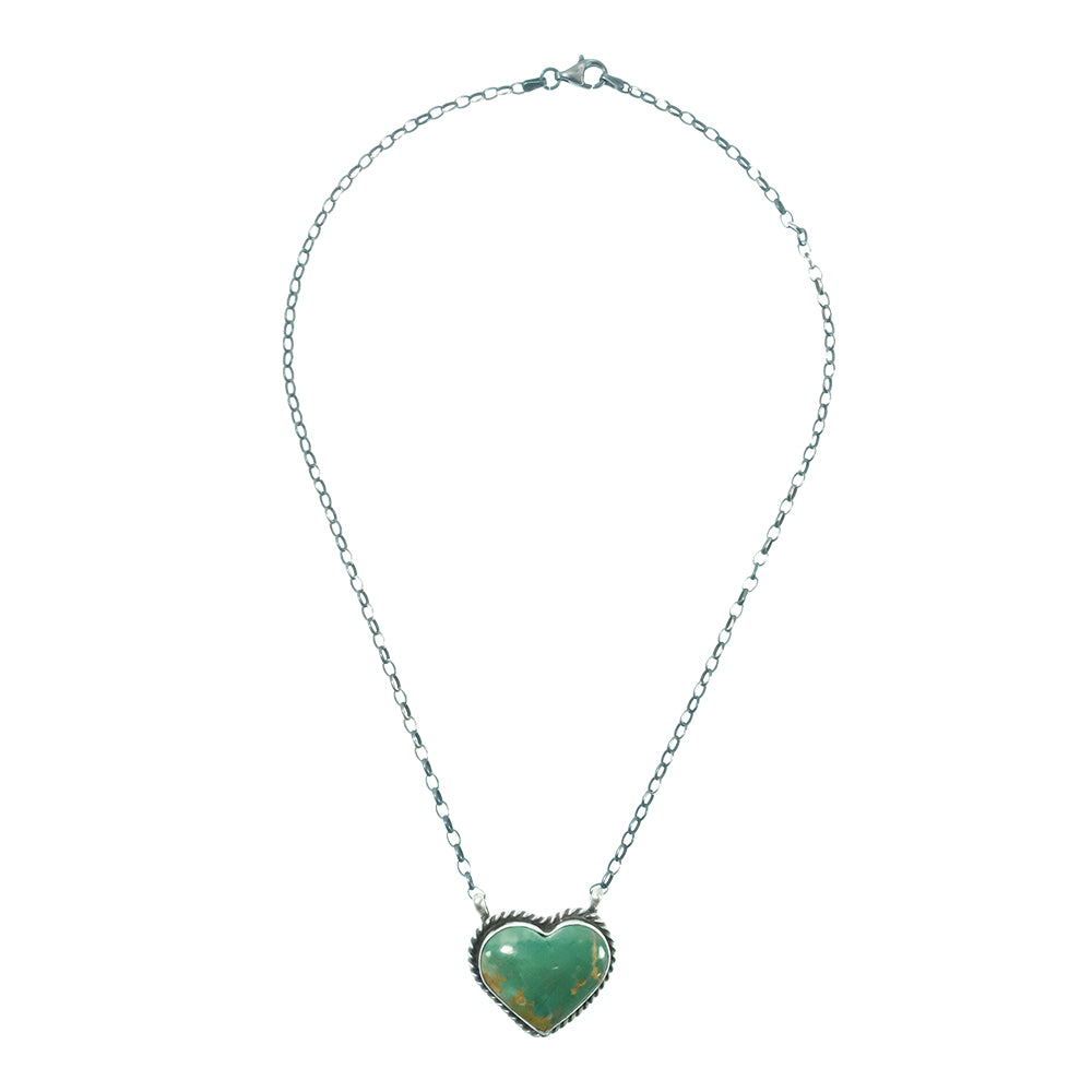 Judith Dixon Native American Navajo Sterling Silver Kingman Turquoise Heart Necklace