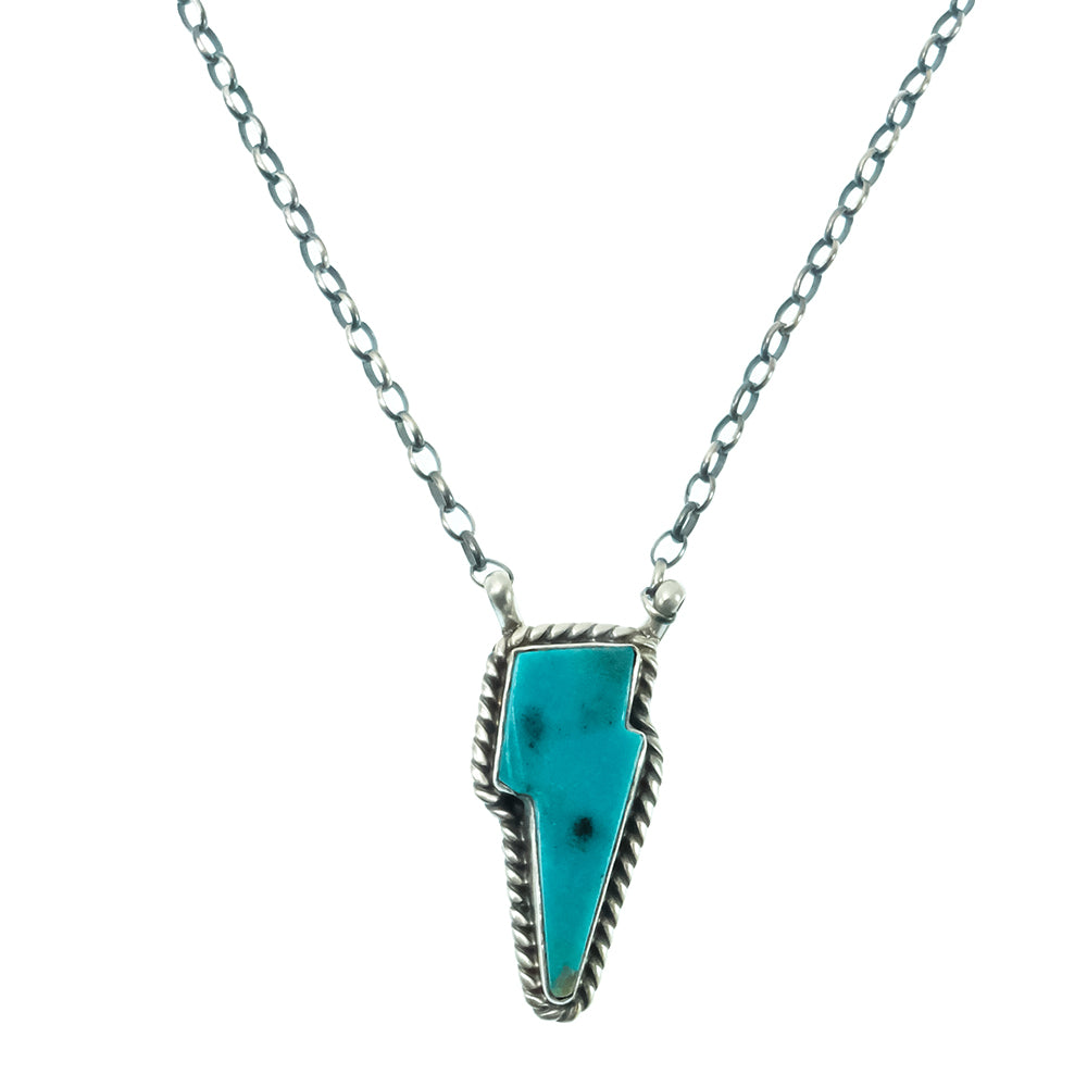 Donovan Skeet Sterling Silver Kingman Turquoise Lightning Bolt Pendant Native American Navajo Necklace
