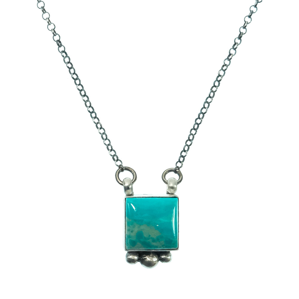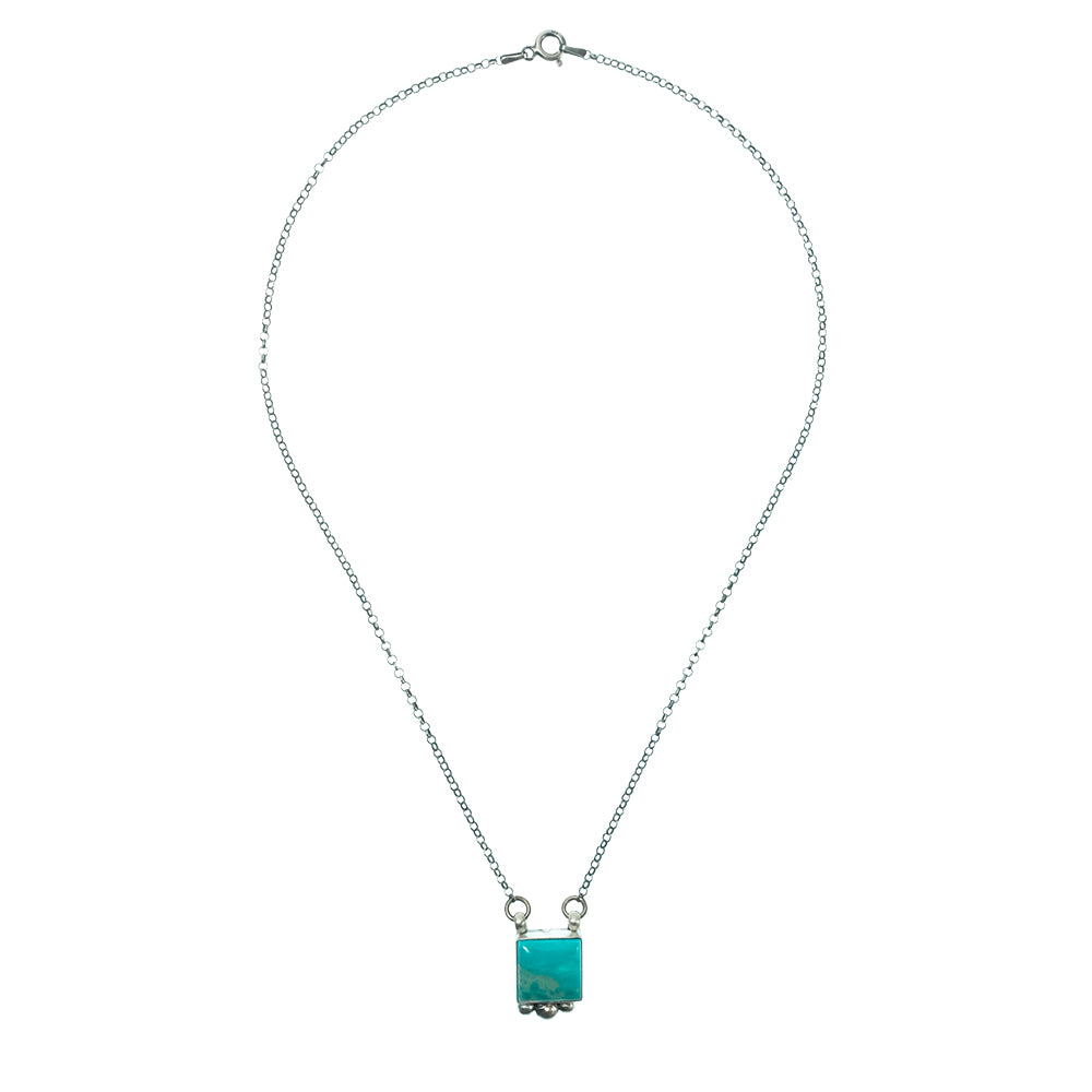 Johnny Dixon Native American Navajo Sterling Silver Kingman Turquoise Necklace