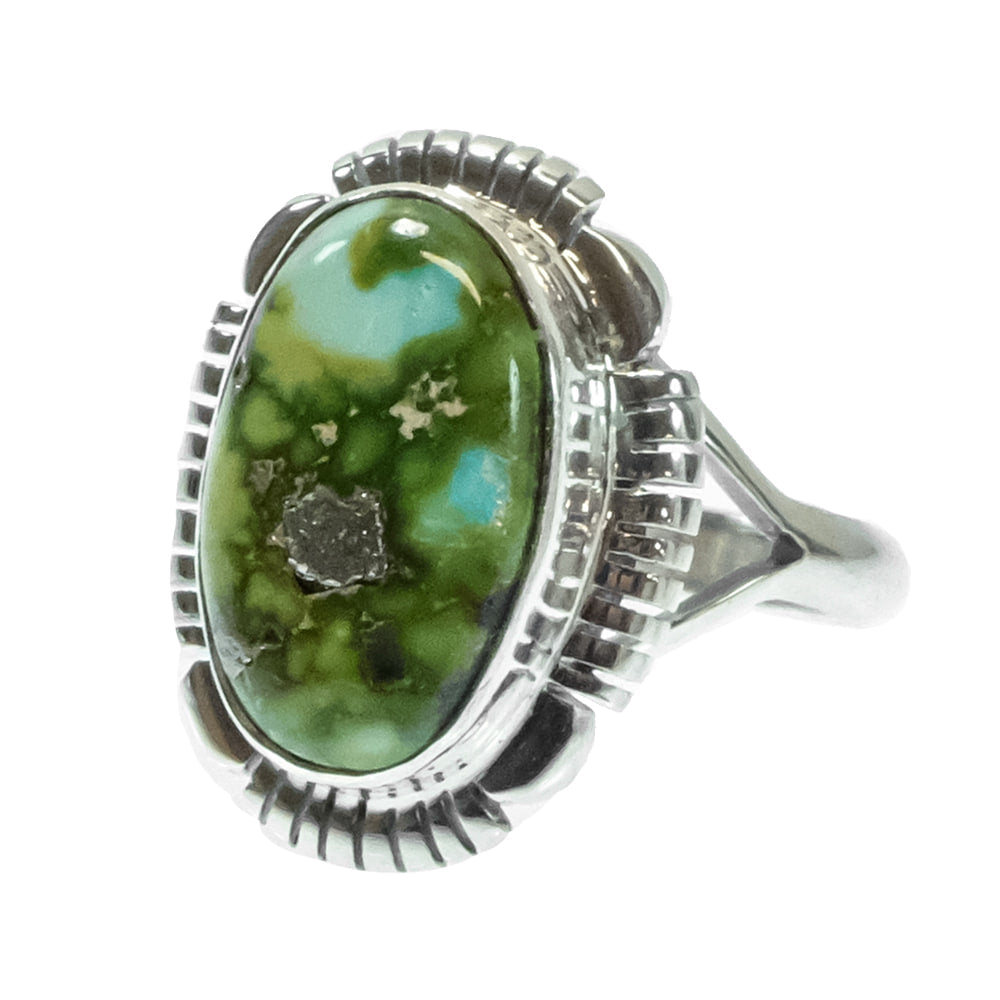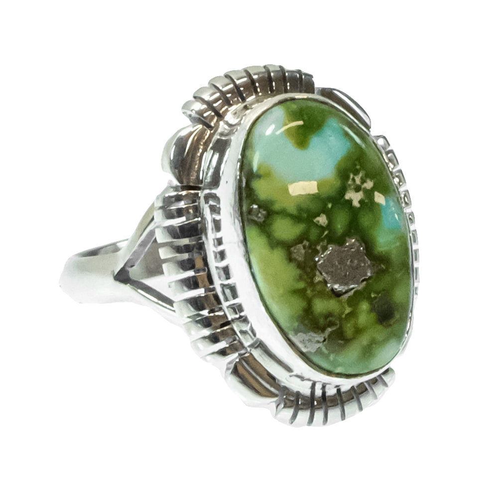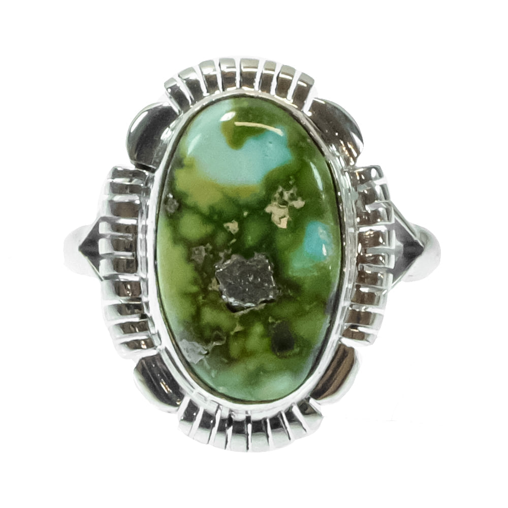 J.F. Native American Navajo Sterling Silver Sonora Gold Turquoise Ring Oval