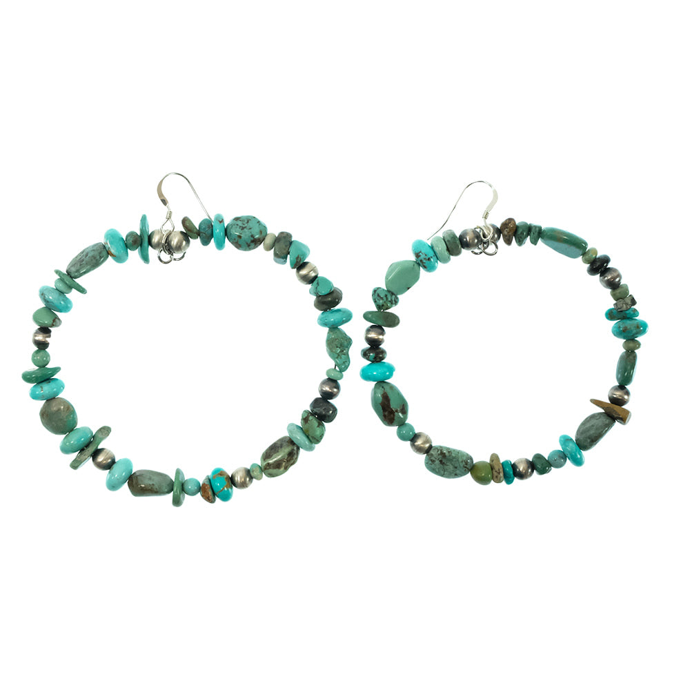 Turquoise Bead Native American Navajo Sterling Silver Dangling Earrings