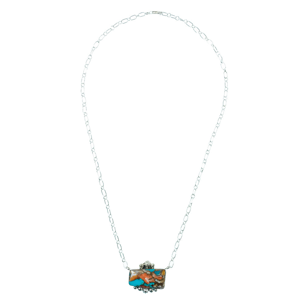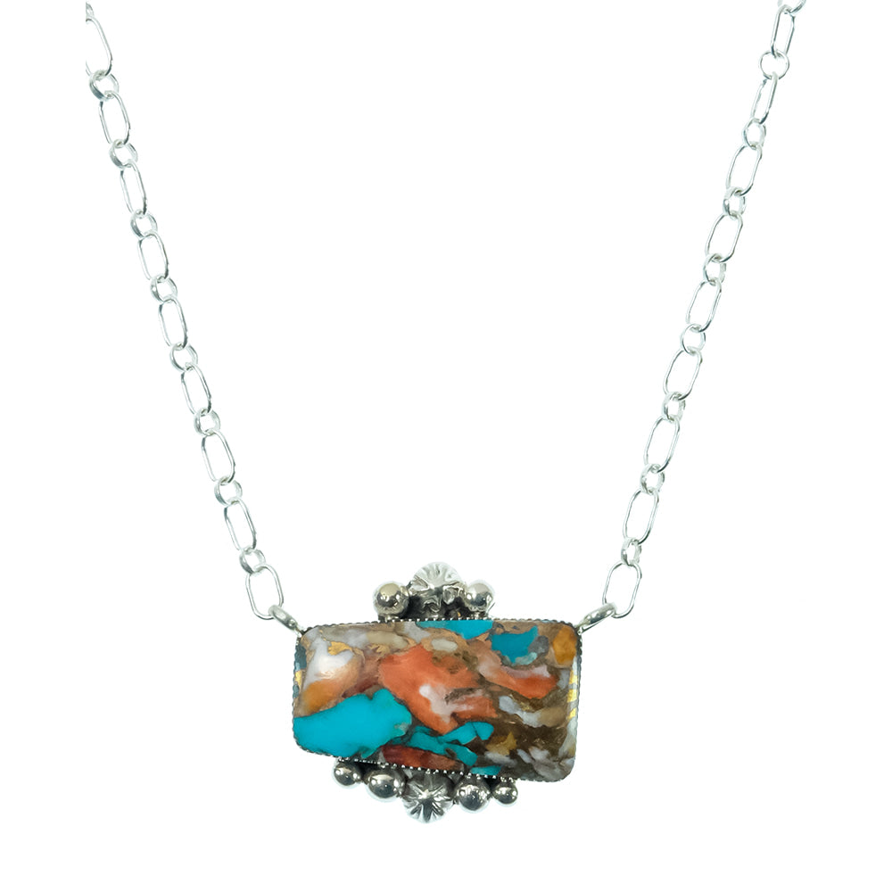 Sheena Jack Native American Navajo Turquoise Compressed Sterling Silver Necklace