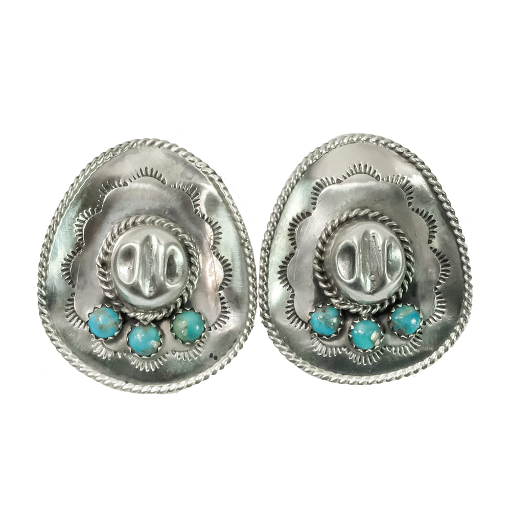 Bobby Platero Native American Navajo Turquoise And Sterling Silver Cowboy Hat Earrings