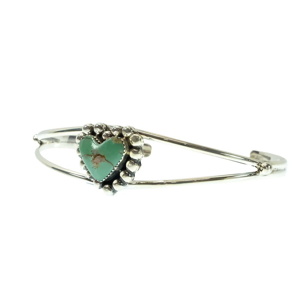 Sonyei Coho Native American Navajo Sterling Silver Turquoise Heart Cuff Bracelet