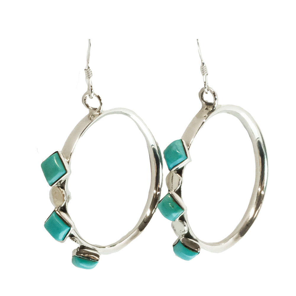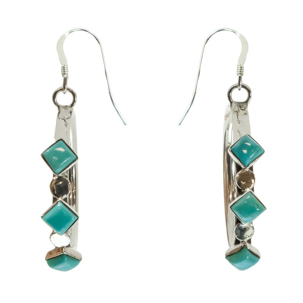 Phyllis A. Smith Native American Navajo Turquoise And Sterling Silver Dangling Earrings