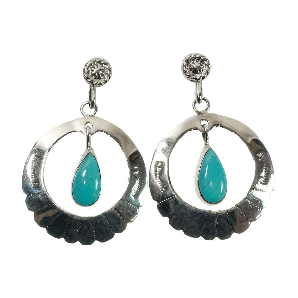 Sheena Jack Native American Navajo Turquoise And Sterling Silver Dangling Earrings