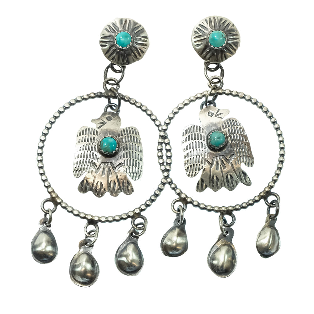 Gabriela Yazzie Native American Navajo Sterling Silver Turquoise Thunderbird Post / Dangling Earrings