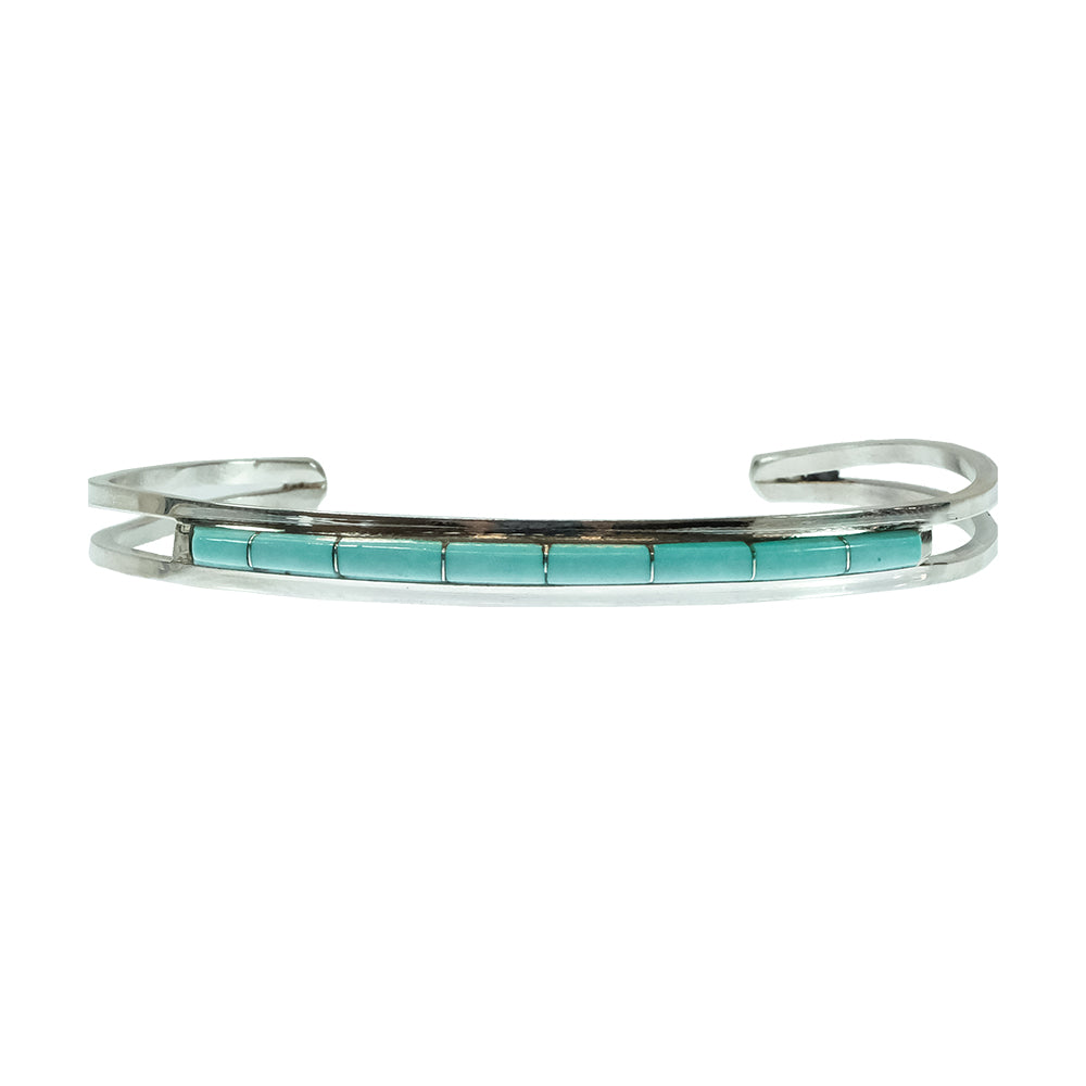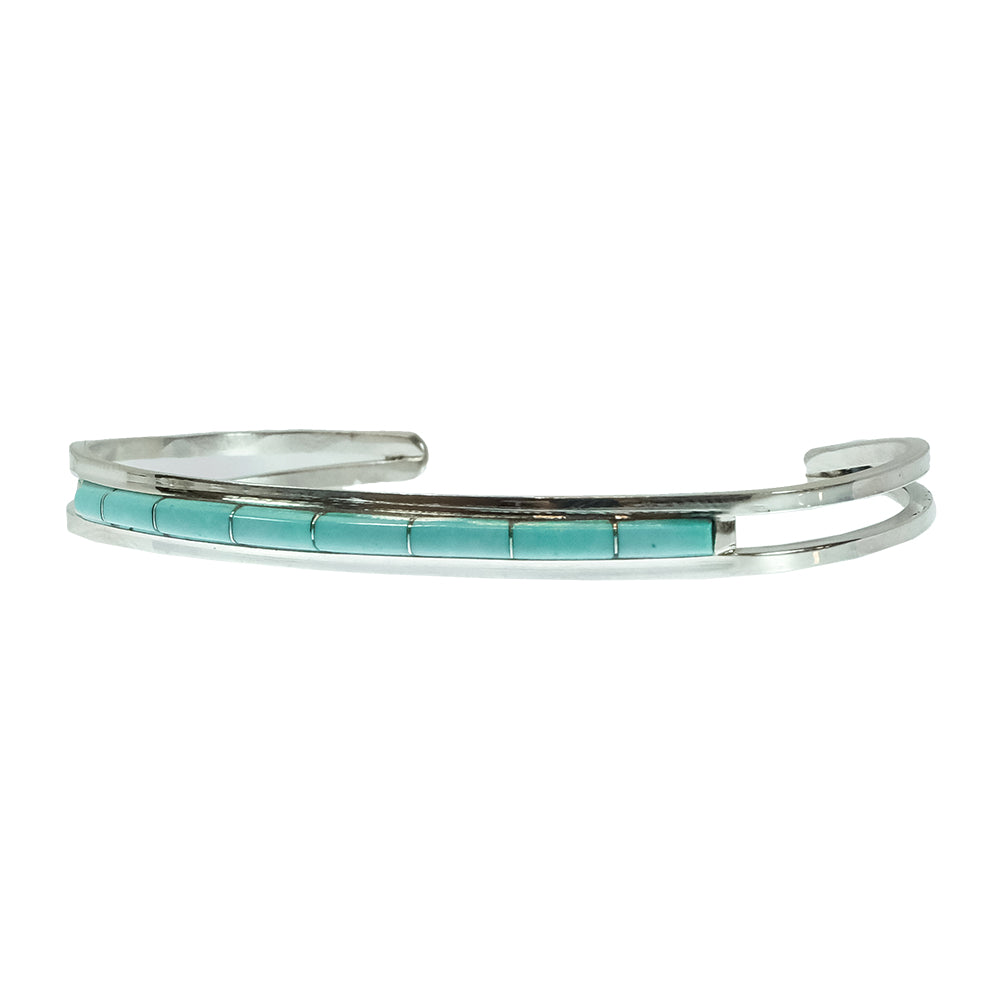 A.L.W. Native American Navajo Zuni Sterling Silver Turquoise Inlay Bracelet