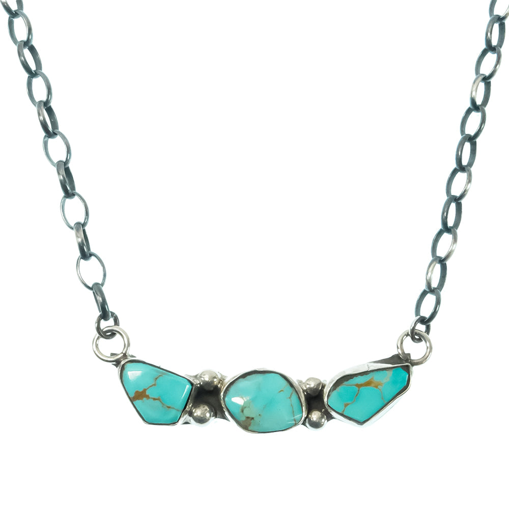 Jude Candelaria Zuni Sterling Silver Kingman Turquoise Native American Necklace