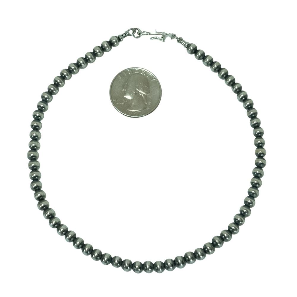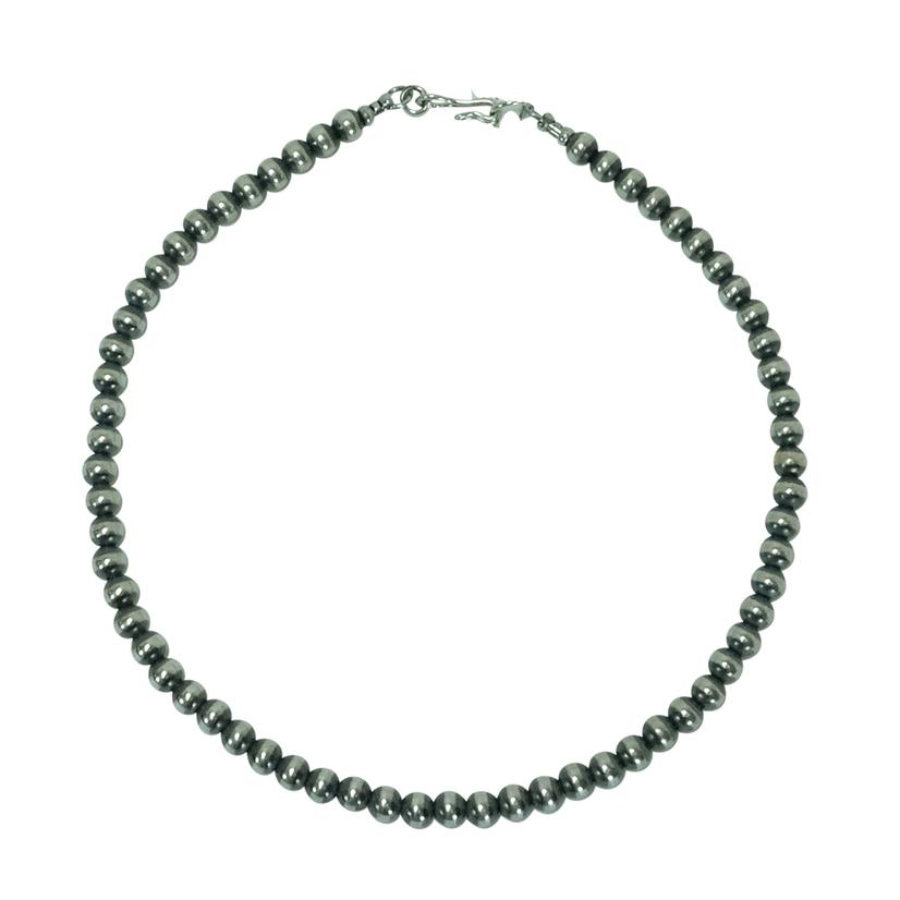 If you're a pearl lover like us, you are going to want to add this to your collection. It's a new take on the traditional white pearl stand. These pearls are sterling silver handmade by Navajo Indians each pearl is 5mm and of the highest quality.
