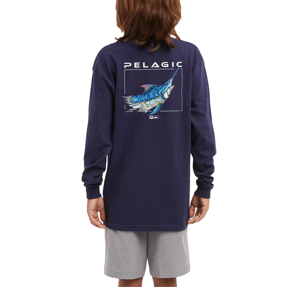 Pelagic Aquatek Goione Marlin Graphic Youth Boy's Long Sleeve Tee In Navy