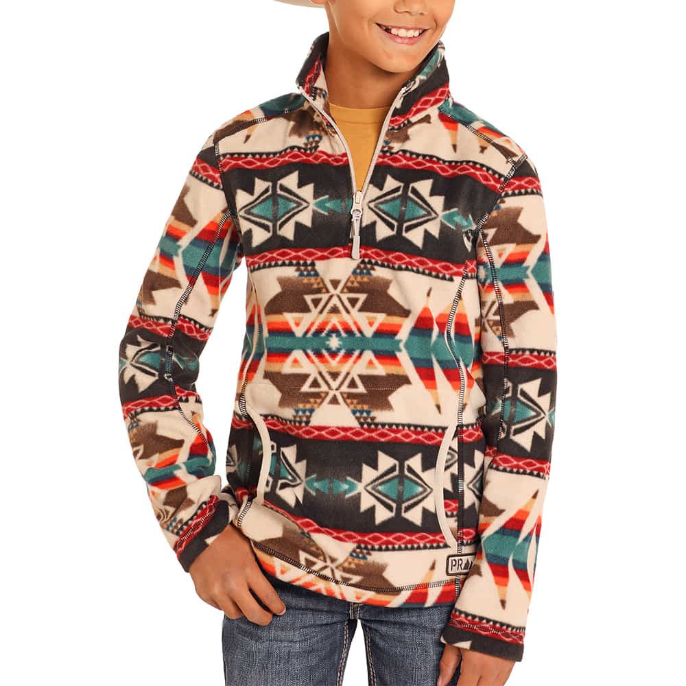 Powder River Boy's Natural Aztec Printed Fleece Pullover
