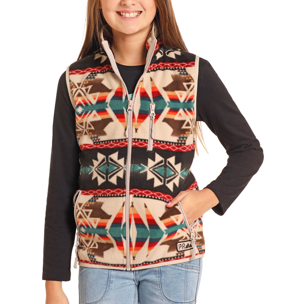 Powder River Girl's Natural Aztec Print Fleece Vest