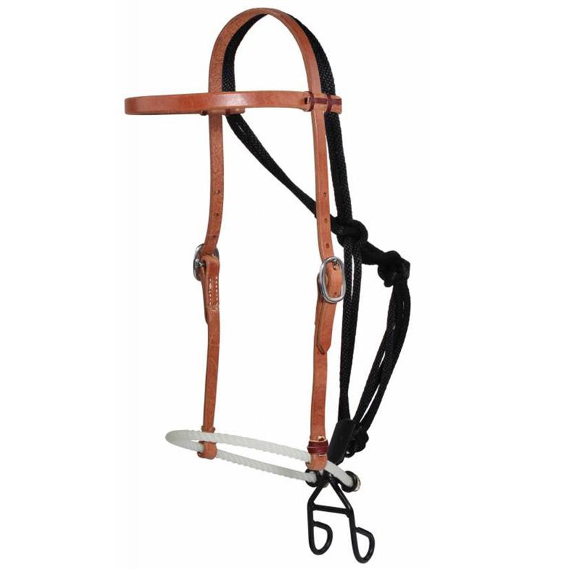 Great training aid to teach the horse a collected stop. The solid plate and rope apply pressure to the horse's chin and nose.