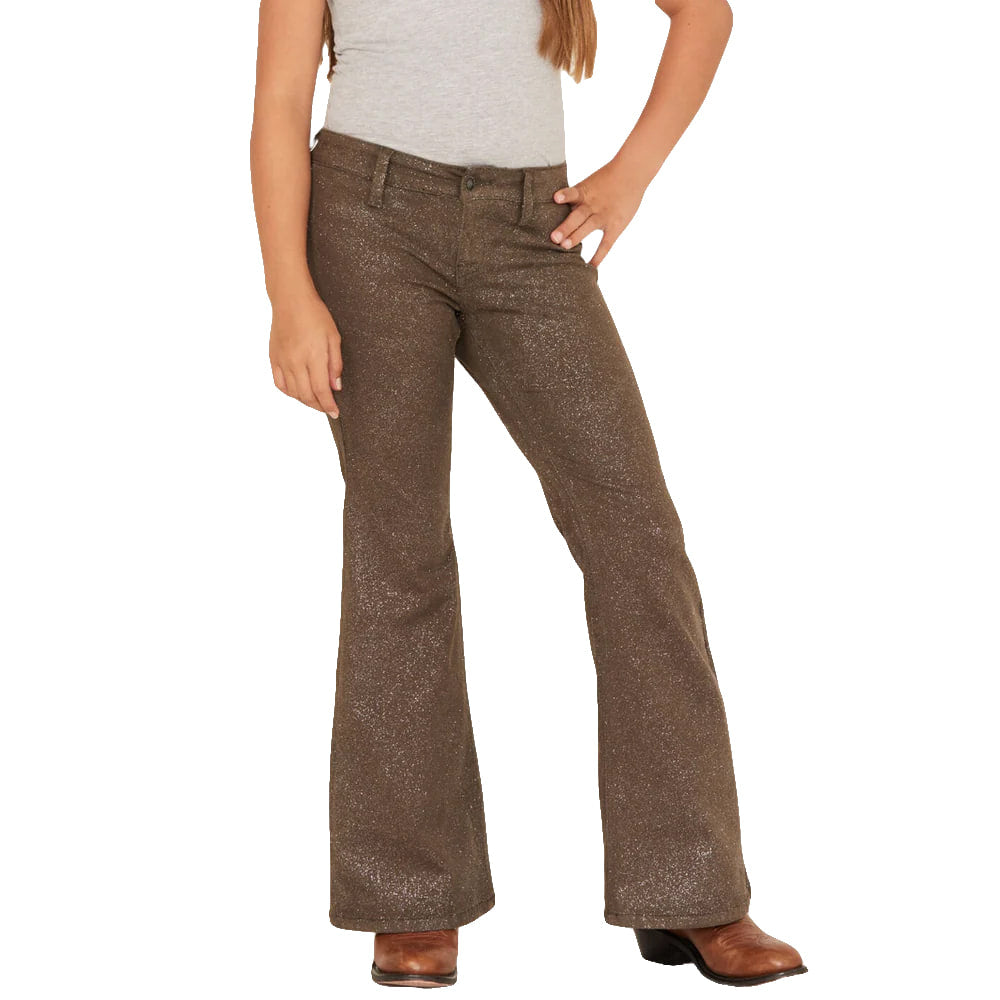 Rock And Roll Girl's Olive Glitter Flare Jeans