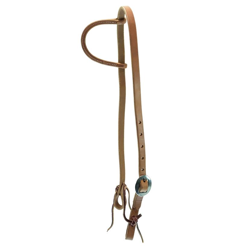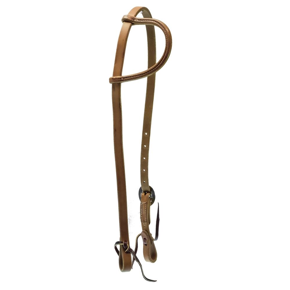 This is a rolled slide ear headstall with single buckle adjustment, straight cheeks, and bit tie ends. This slide ear headstall is 5/8 of an inch and is made from premium Hermann Oak harness leather.
