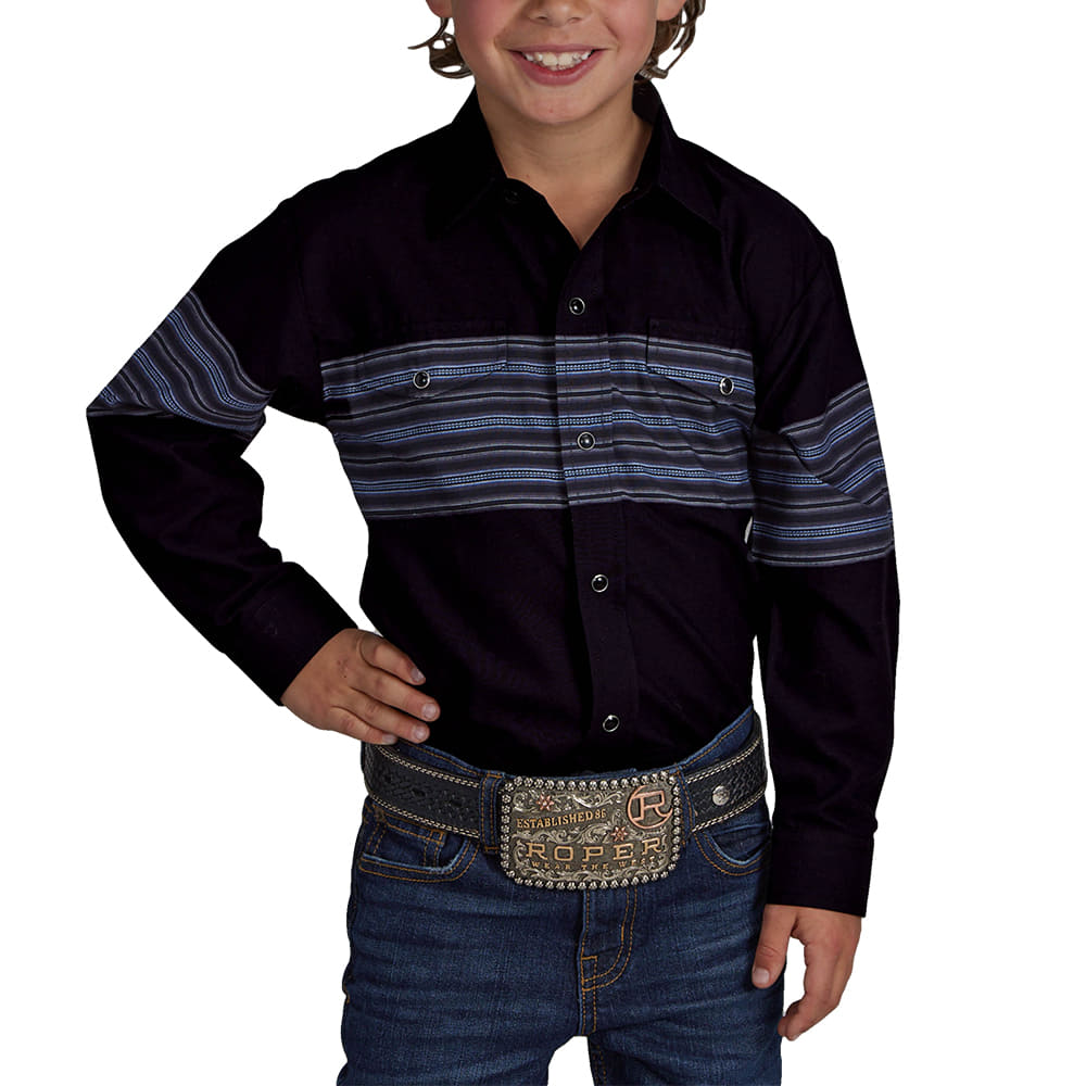 Roper Border Striped Long Sleeve Snap Boy's Shirt In Blue