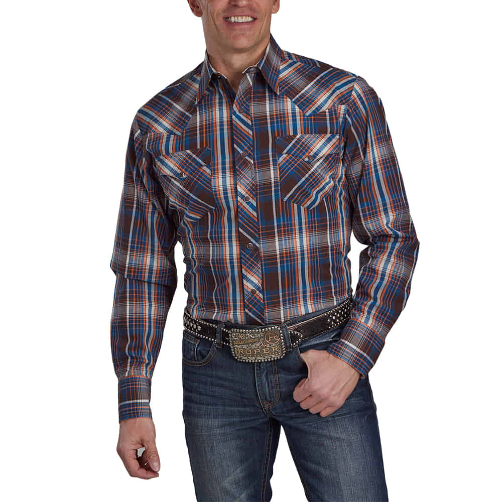 Roper Plaid Long Sleeve Snap Men's Shirt In Brown