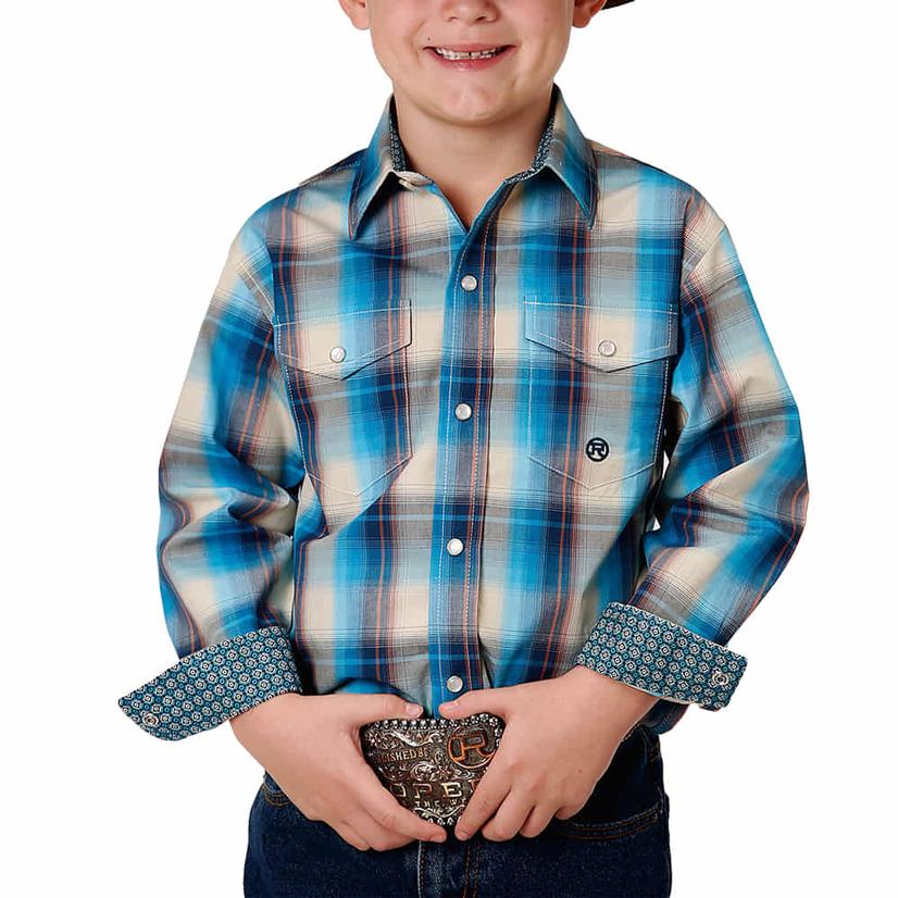 Roper Sunset Plaid Boys Long Sleeve Shirt