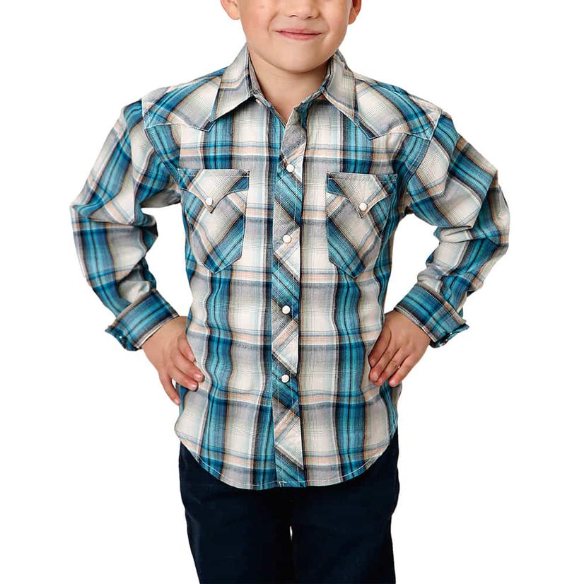 Roper Vintage Turquoise Plaid Boys Long Sleeve Shirt