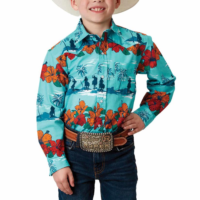 Roper West Made Collection Hawaiian Print Long Sleeve Pearl Snap Boy's Shirt