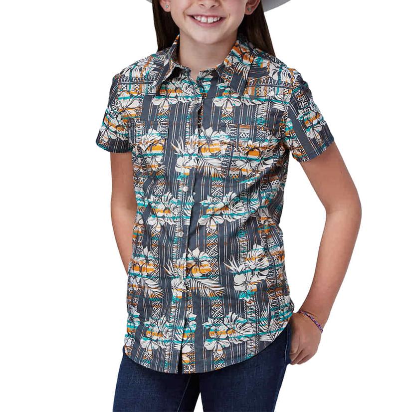Roper West Made Hawaiian Navy Girl's Short Sleeve Top