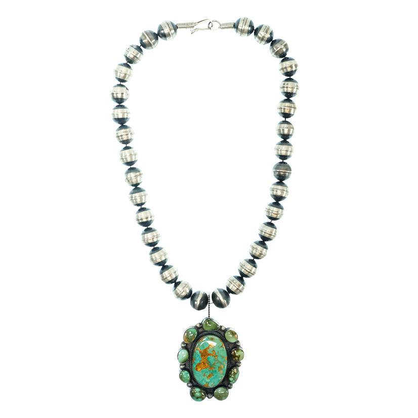 South Texas Tack Oxidized Bead Necklace with Royston Turquoise Pendant