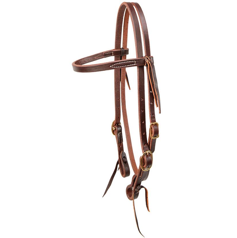 A browband headstall made from heavy oiled Herman Oak leather. This headstall has bit tie ends, straight cheeks, and double buckles. This is a 5/8 inch browband headstall.