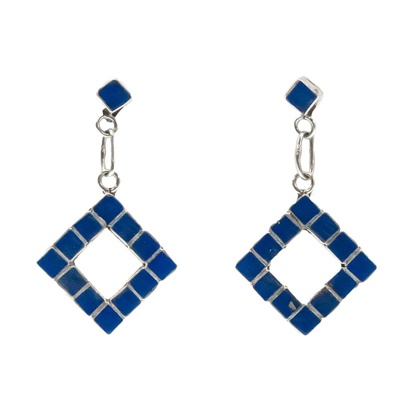 Lapis And Silver Diamond Shaped Dangle Earring
