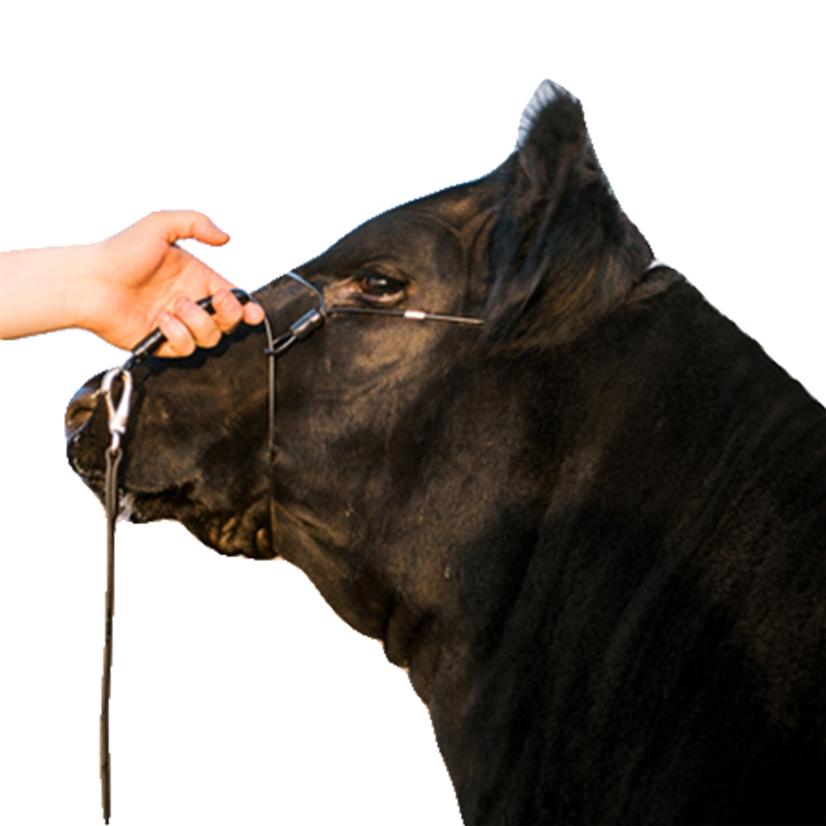 No matter if you're in the barn or the show ring the Phantom Halter will help young showman control their animal. This halter was developed with both the showman and calf in mind. Made of 1/8" vinyl coated galvanized cable with all plastic covered clamps, the Phantom Halter gives a sleek look that a leather halter doesn't provide. The Ghost Grip allows easy handling and comfort for the showman. Come get your show halter today!