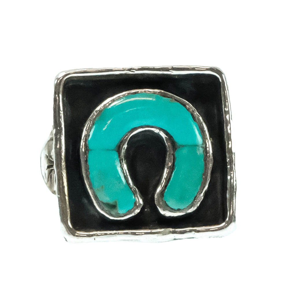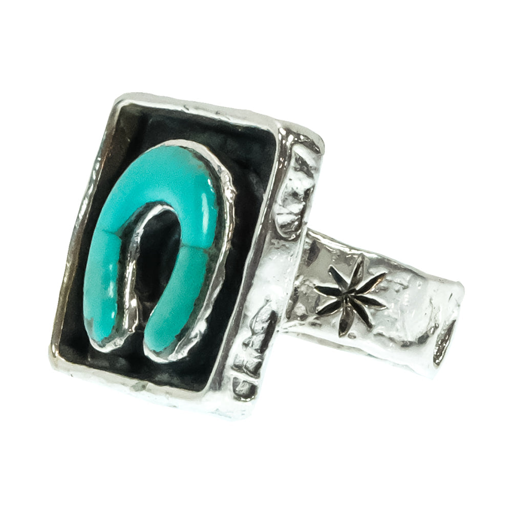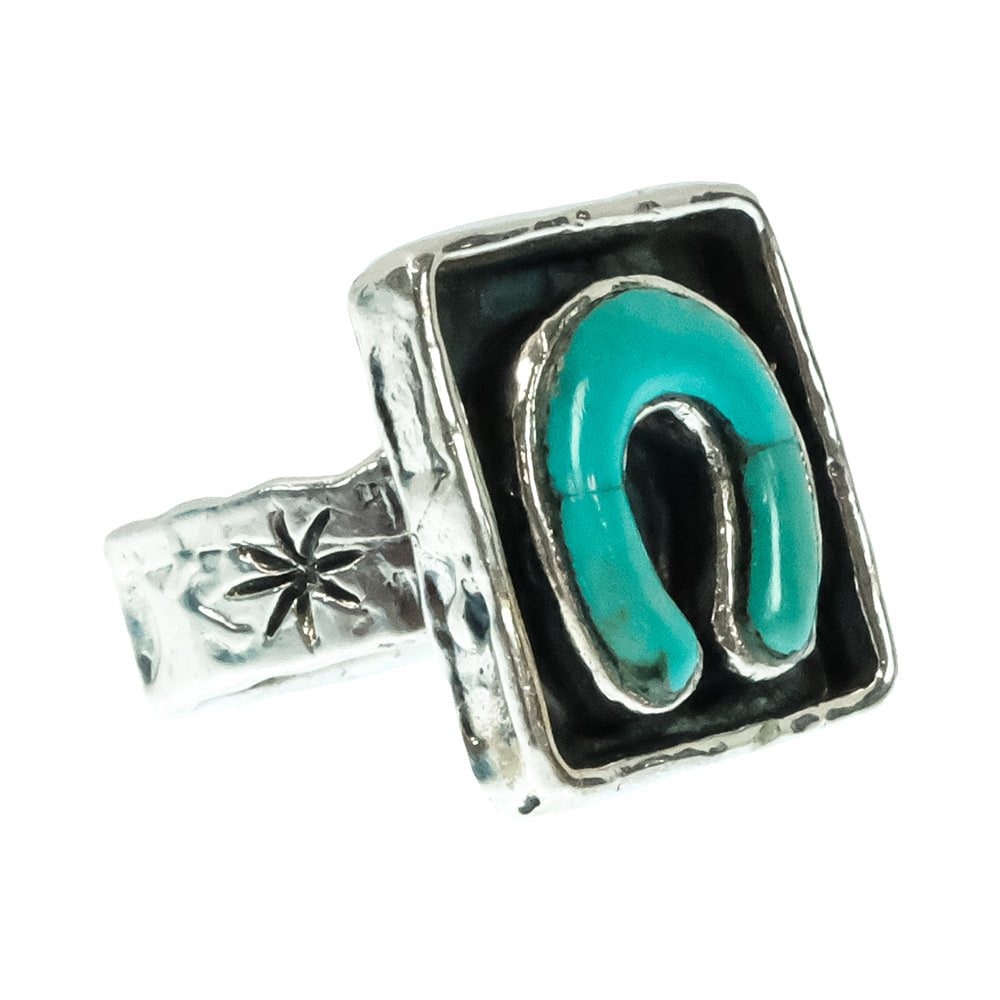 Peyote Bird Designs Horse Shoe Silver And Turquoise Ring