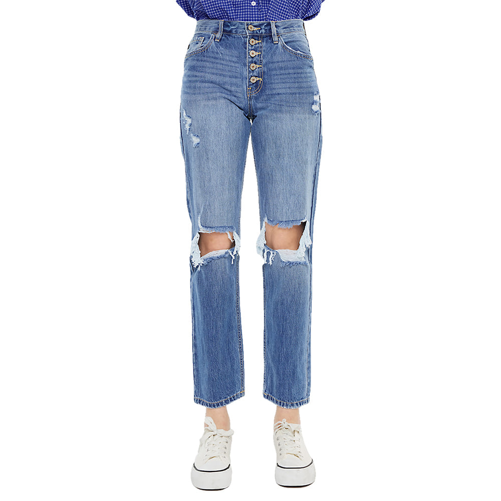 Kancan Keke High Rise Straight Leg Distressed Hem Dark Wash Women's Jeans