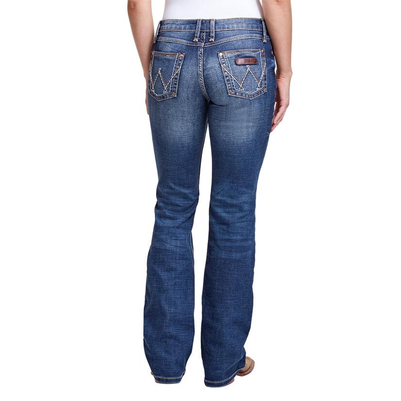 This women's jean by Wrangler features traditional five-pocket styling, embroidered hip pockets and a bootcut leg opening for a classic look. The contour waist sits above the hip and there's some stretch in the denim for a long lasting comfortable fit that you'll love