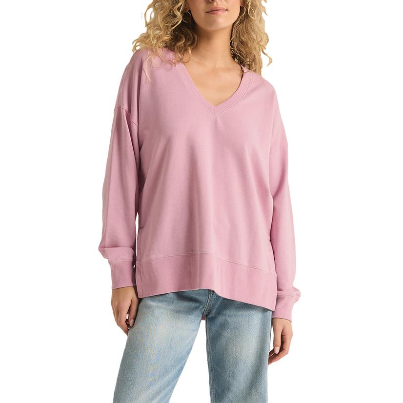 Z Supply Modern V-Neck Weekender Long Sleeve Women's Mauve Shirt