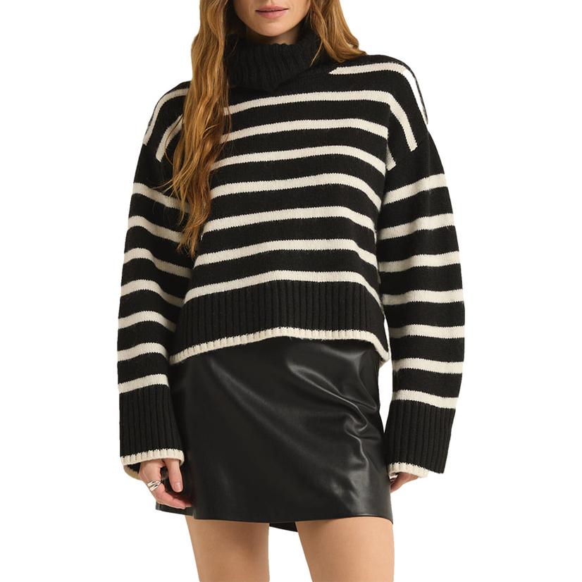 Z Supply Women's Black And White Josephine Stripe Sweater